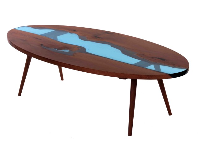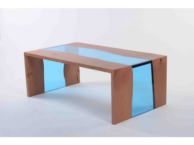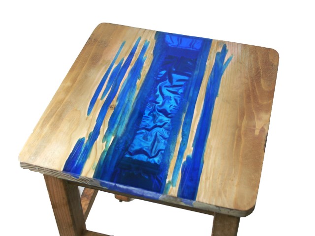 A deep glossy resin finish across the whole surface of your table can easily be achieved by pouring a layer of AQUARES over the whole project.